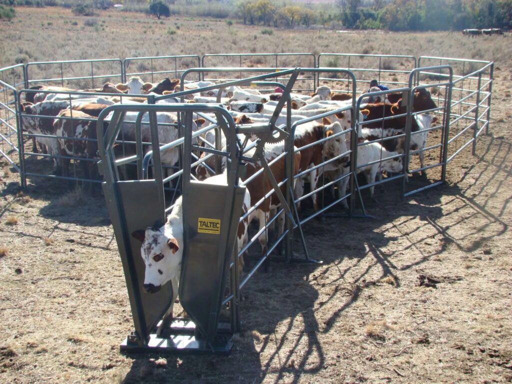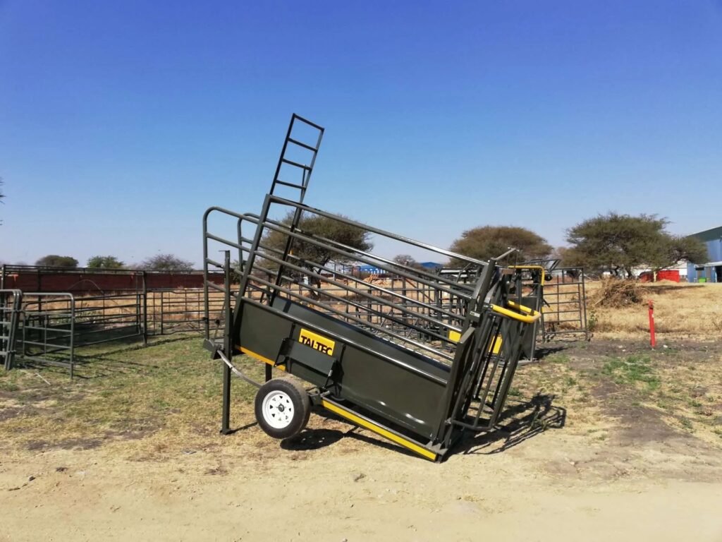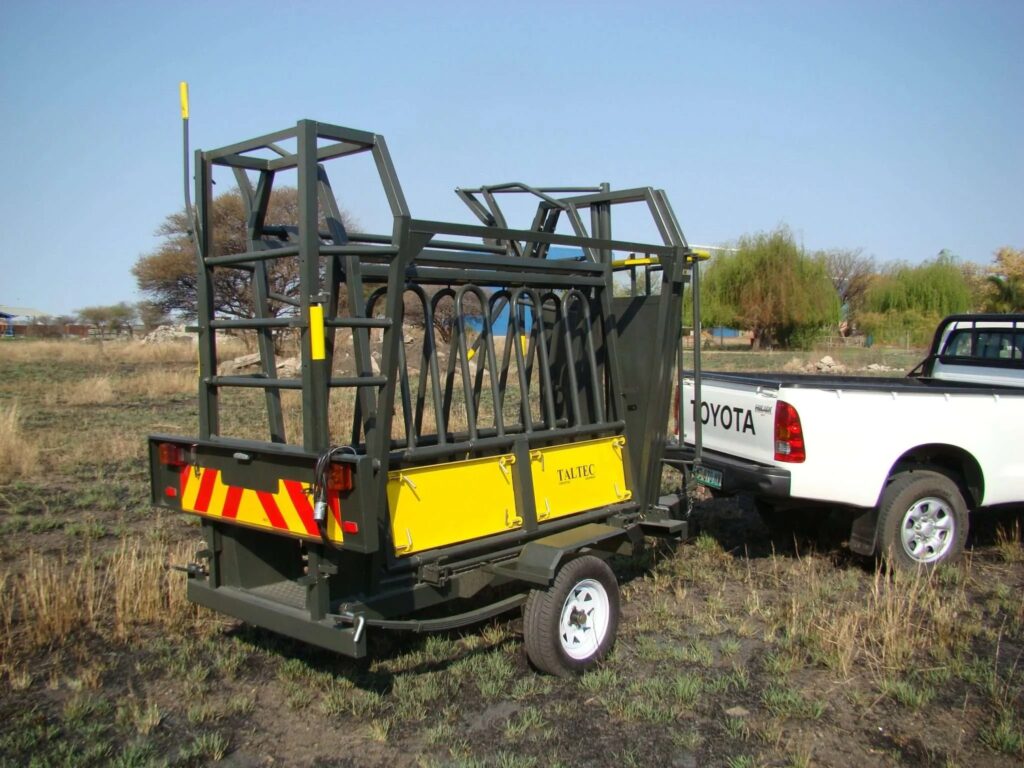 The portable cattle kraal with trailer is ideal for working with cattle across various farms. It assembles easily and is not permanent, allowing flexibility. Capable of handling around 80 cattle at once, depending on their size and breed, the unit can be equipped with a neck clamp at the end of the crush for more detailed work. The trailer is SABS approved and roadworthy.